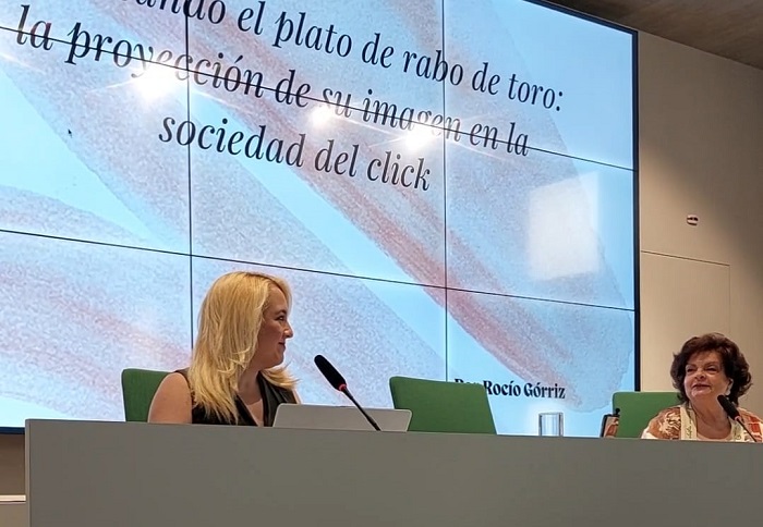 Yo fui la encargada de presentar a la siguiente ponente, como responsable de comunicación y RRSS de la cofradía: Rocío Górriz, periodista especializada en gastronomía y estilo de vida, propietaria de la agencia Rocío Gorriz Comunicación, que desarrolló el tema: “Comunicando el plato de rabo de toro: la proyección de su imagen en la sociedad del click.”