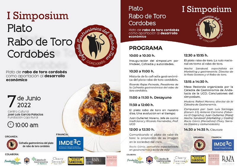 El I Simposium sobre el plato Rabo de Toro Cordobés se ha celebrado este mes de junio, bajo el lema: "El Plato rabo de toro cordobés como aportación al desarrollo económico de Córdoba". Fue en la sede de la Fundación Caja Rural del Sur.