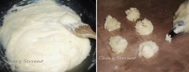 Cuando esté fria o tibia, se pone en una manga y se hacen las sultanitas.