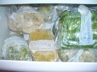 Esta foto es de un cajón de mi congelador: apreciareis que tengo calabacines, coliflor, pimientos, berenjenas, coles y acelgas, todo listo para ir consumiendo hasta la próxima cosecha.