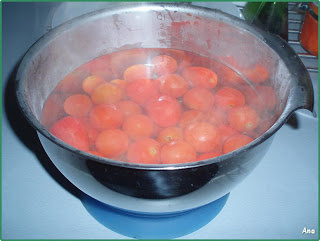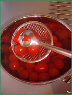 7.- INTRODUCIMOS CON CUIDADO LOS TOMATES Y CUBRIMOS CON EL AGUA FRÍA RESERVADA.
