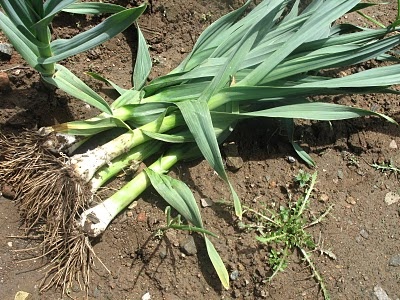 Son totalmente naturales y hay muchísimos; hay que cavar mucho para sacarlos, por eso cuando llueve cojo todos los que puedo, que son fáciles de arrancar, pero este año el hombre que nos ayuda a cuidar el huerto sembró algunos y ahora los cojemos más fáciles, además ya salen mas parecidos al puerro, aunque tiene su técnica. Creo que hay que estar resembrando durante 3 años guardando los ajos y al 4º ya se recojen como estos: