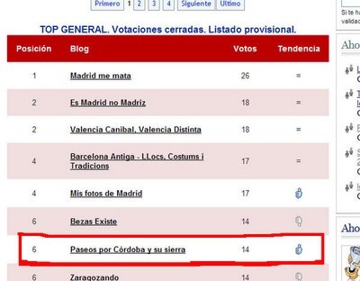 Mi blog de Córdoba si ha quedado bien situado: el 6º en categoría Tu ciudad.
