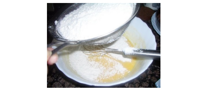 Pasamos la harina por un colador grande para que esté muy fina, sin grumos y aireada.