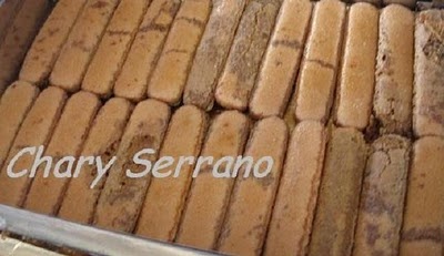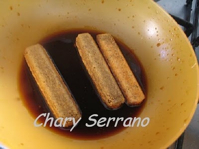 Ponemos en un bol y vamos mojando en él los bizcochos, pero muy ligeramente, para que no empapen mucho