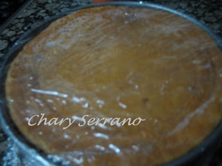 Ponemos encima un film transparente y metemos el bizcocho en el frigorífico unas horas.
