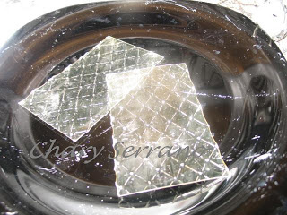 Ponemos en agua las hojas de gelatina para que se ablanden.