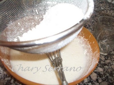 Batir las yemas que resulten espumosas, mezclar con las claras, echar la raspadura de limón y la canela, mezclar bien y a continuación ir agregando la harina cernida, poco a poco y mezclar con movimientos envolventes.
