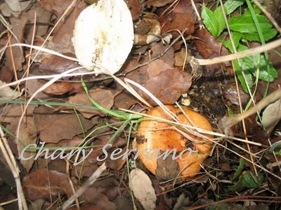 Aquí un níscalo y una seta blanca, un poco mas arriba, es que no sale bien
