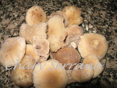 Estas setas tan grandes (también cogí mas pequeñas) les llaman por al zona "gallinetas" son de sombrerillo recto, tronco largo con un anillo en el centro y para comerlas se les quita la piel superior y el tronco, se limpian bien y se ponen a la plancha.