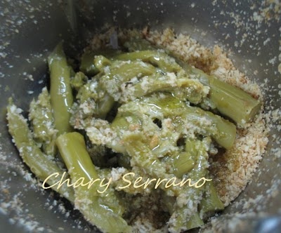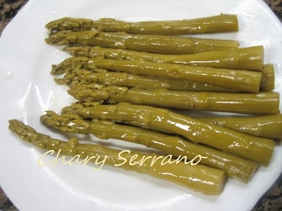 En esta ocasión he usado espárragos verdes en conserva, que es como me lo han dicho, pero igualmente se puede hacer con espárragos verdes frescos, previamente hervidos.