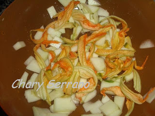 La he preparado aprovechando flores de calabacín y uno de mis calabacines, todo del huerto.