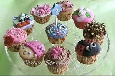 En esta bandeja tengo los cupcakes que hice en el curso mas otros que elaboré en casa.