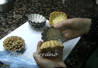 También si tenéis mas tartaletas iguales podéis prescindir de la legumbre y poner encima de la masa otra tartaleta, así no se bajará la masa. Yo de esas solo tengo las 6 y no he encontrado mas, son antiguas.
