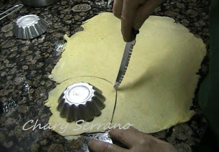 Mis moldes son rizados y usé el rabito de la brocha para pegar la masa al molde y que cogiera bien la forma.