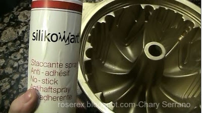 Le echo el spray antiadherente al molde, que cubra toda la superficie, y le pongo la mezcla.