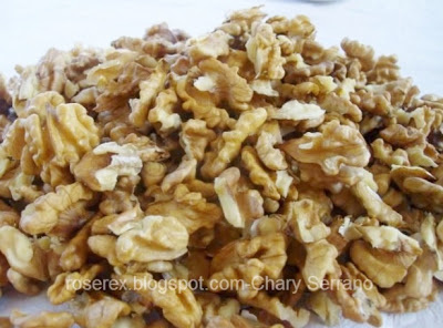 Partimos las nueces de california en trocitos y añadimos la mitad a la masa (primero las enharinamos ligeramente) repartiéndolas de forma uniforme.