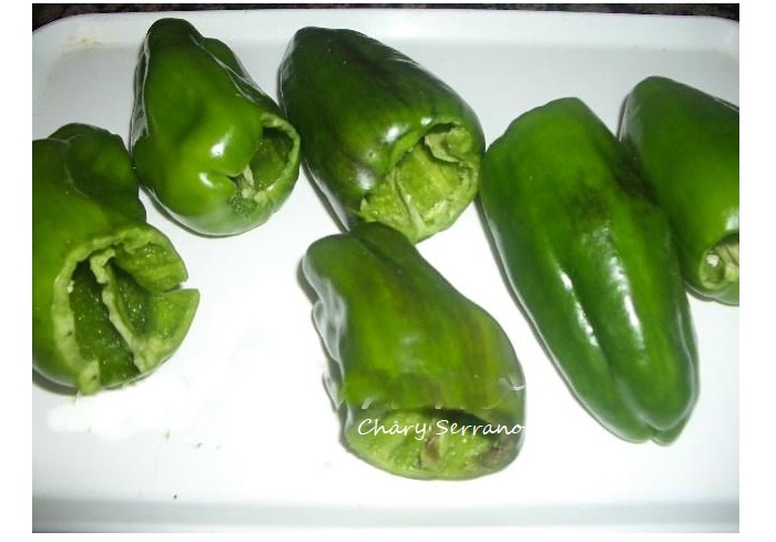 Los pimientos que me gustan para esta receta son los verdes medianos, tipo 4 cuartos.