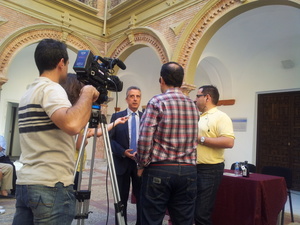 En el patio principal del Palacio de los Condes de Santa Ana, el Sr. Alcalde de Lucena explicó a la prensa como se había desarrollado el concurso de tapas, que se ha celebrado desde el 15 de mayo hasta el 21 de Junio.