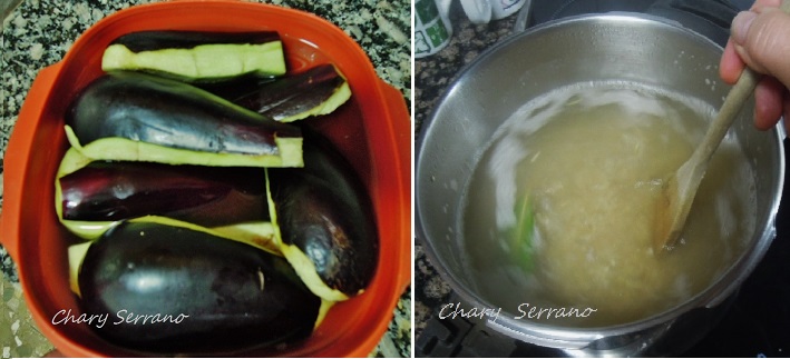 BERENJENAS RELLENAS DE ARROZ Y GAMBAS