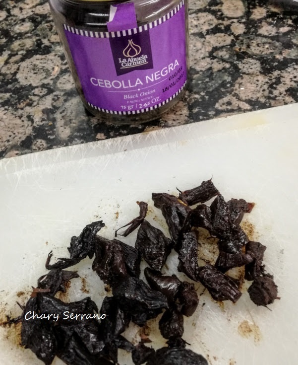 Voy a copiar la receta tal cual viene en el libro, aunque yo he incluido un ingrediente nuevo, diferente y que me encanta: cebolla negra, elaborada en Montalbán, un pueblo vecino al de Aguilar, por La Abuela Carmen, con múltiples cualidades que resalto en 4 recetas en el blog.
