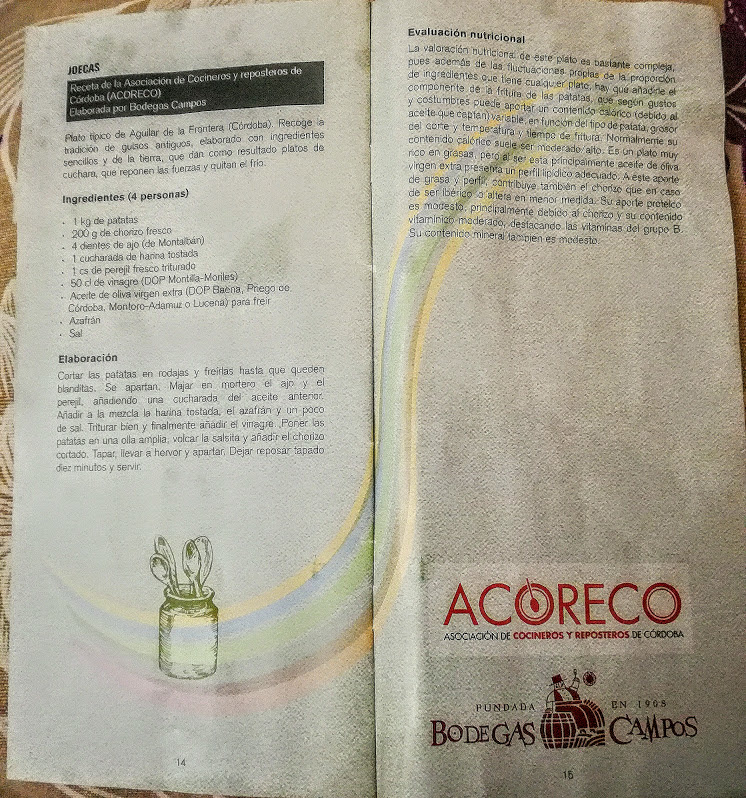 Guiso sencillo que probé en la Jornada Técnica del proyecto de la Biblioteca de la Gastronomía Andaluza, "Recuperando la memoria Gastronómica de Andalucía" en las Caballerizas Reales de Córdoba.