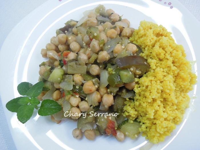GARBANZOS CON VERDURAS Y COUS COUS A LA CÚRCUMA