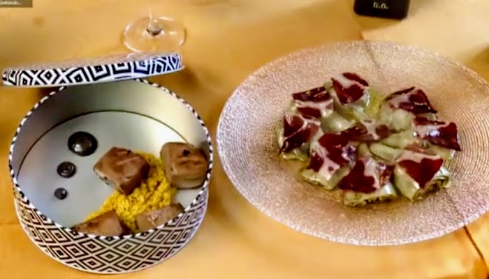 Carmen María Sánchez de Taberna Almodóvar, Salteado de alcachofas al Montilla Moriles y jamón de bellota 100% ibérico Denominación de Origen Los Pedroches, acompañado con Fino de la Denominación de Origen Protegida Montilla-Moriles.