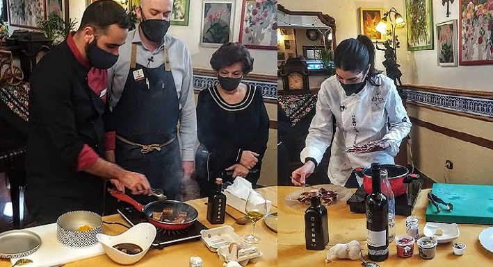 Desde sus casas, 60 comunicadores entre Periodistas, Blogueros y Tour operadores, repartidos a 12 por cada espacio gastronómico, que de forma simultánea han seguido atentamente la ejecución de las recetas que han ido recreando desde sus cocinas, puesto que con antelación habían recibido en sus casas todos los ingredientes necesarios para hacer estas recetas. Y 5 presentadores – dinamizadores, uno desde cada restaurante.