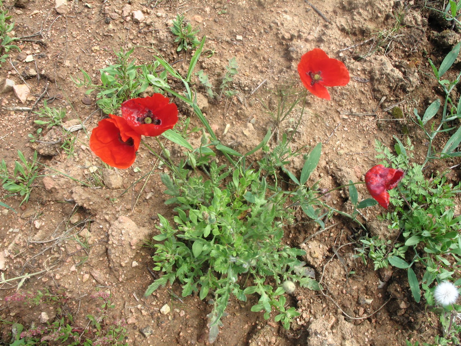Las primeras amapolas y acelgas que salen solas cerca del arroyo.