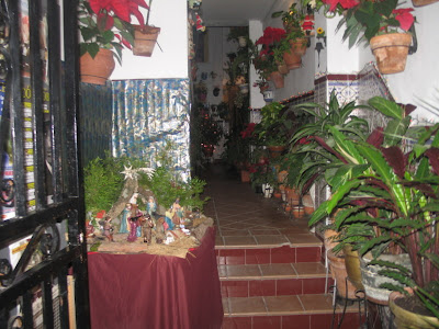 Las ultimas fotos que me quedaban por mostrar de los patios que visité en Navidad. Esta casa-patio nos recibe con un belén en la entrada, que da acceso por un pasillo bien adornado, al hermoso patio.